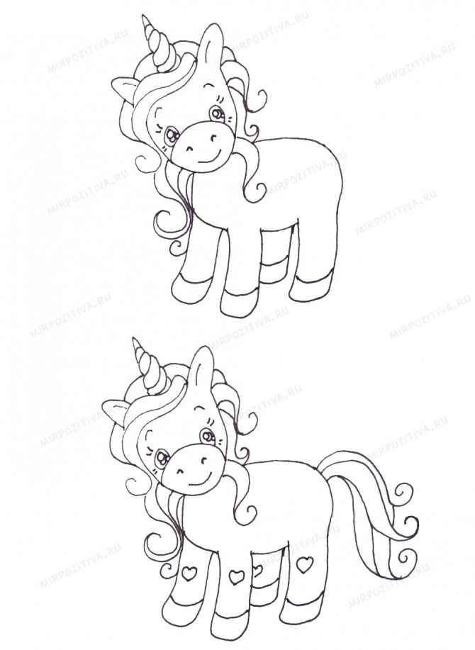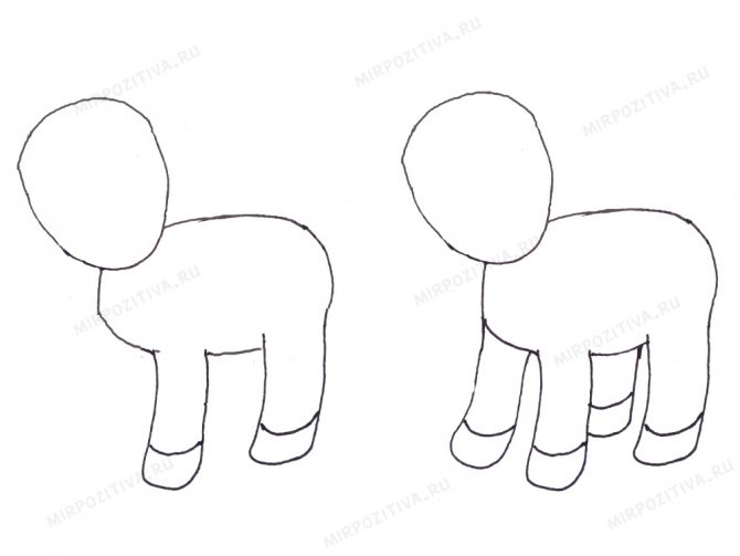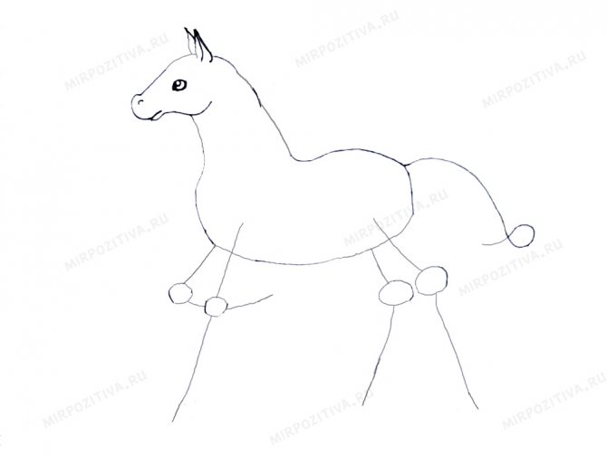 Udarbejd konturen af enhjørningens krop, idet du er opmærksom på proportionerne: korrekt, hvis benene er længere end kroppen, og de forreste er lidt kortere end de bageste.