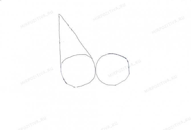 Det er simpelt: Først skal du trække to kugler, der berører hinanden, omtrent i samme højde. Træk en linje opad fra kanten af den venstre cirkel. Tegn trekanten ud som vist på billedet.