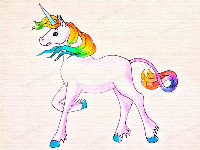 Som du kan se, er det slet ikke svært at tegne en sjov og sjov enhjørning.