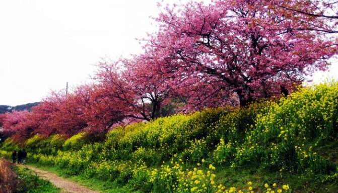 Desværre holder kirsebærblomsterne ikke længe: de holder kun lidt over en uge. Derfor anses dens blomster for at være et symbol på livets flygtighed. Nogle japanere, der ønsker at forlænge deres yndlingsferie, følger kirsebærblomsterne fra by til by. Hvis du følger den fra blomstringens begyndelse i syd til de sidste kronblade falder ned i nord, kan du beundre den i en hel måned. Det er interessant, at kirsebærblomsterne først kommer på grenene, og først når de er faldet ned, blomstrer bladene. Derfor er hele træet i fuld blomstring hvidt eller lyserødt.