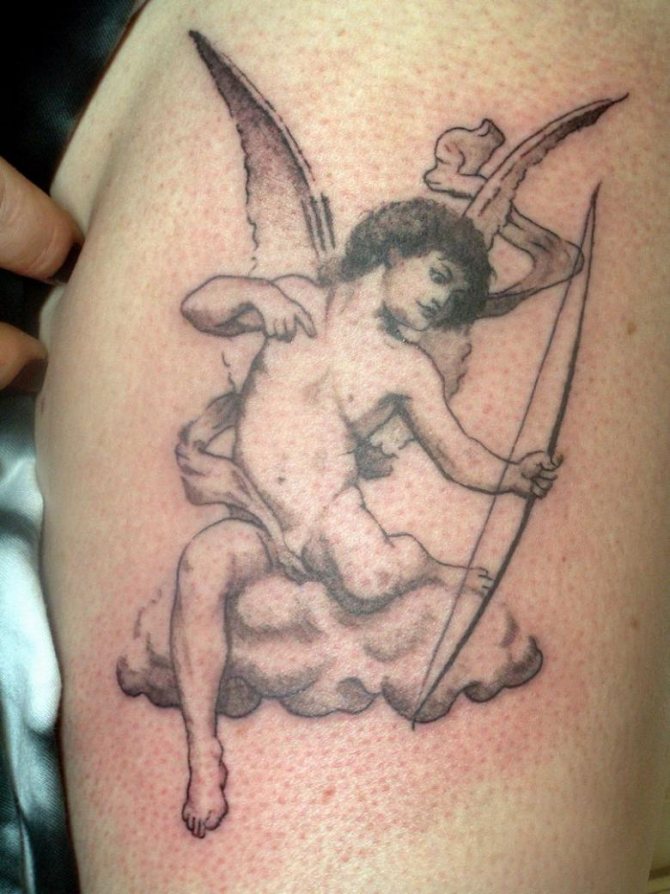 Cupid - et symbol på kærlighedens uundgåelighed, lidenskabens blindhed, følelsernes overvægt over fornuften. Billedet af en guldblond ung mand eller et buttet spædbarn findes ofte med bind for øjnene, hvilket viser tilfældigheden og uforudsigeligheden af uhæmmede begær. I kunst og kultur var den gamle romerske kærlighedsgud en budbringer for Afrodite, som hjalp hende med at tænde lidenskabens ild mellem mænd, så menneskeheden ikke blev afbrudt. I dagens verden er en tatovering af Amor et tegn på vanvittig, intens kærlighed, lidenskabelig tiltrækning, liv efter døden, den uendelige cyklus af eksistens.