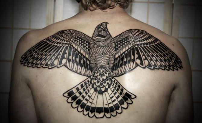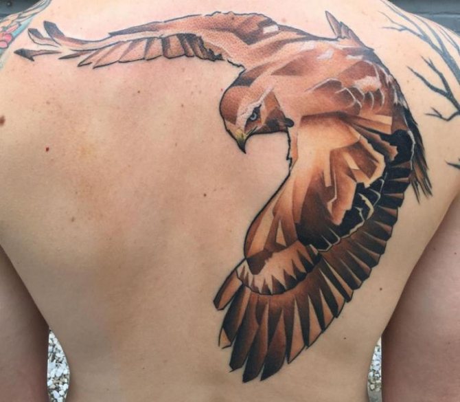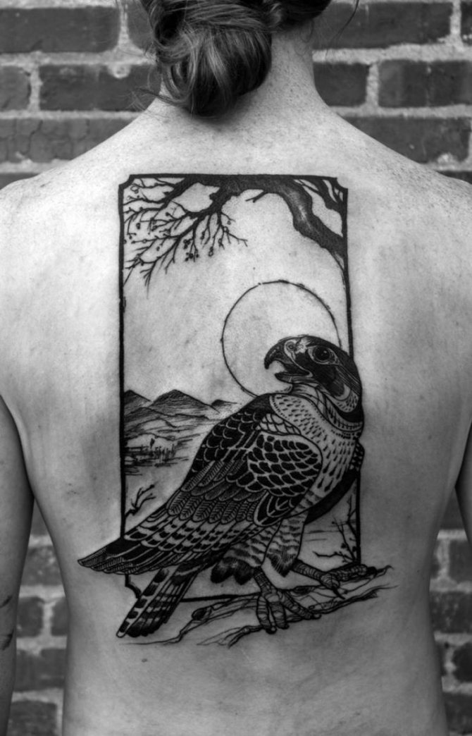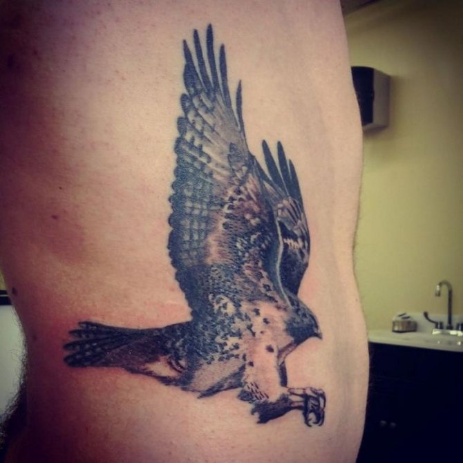 En tegning af en falk på kroppen kan blive en talisman for en selvsikker og stærk mand med en veludviklet muskulatur. En sådan kompleks tatovering er mest egnet til mænd, der føler krigere, som ikke er fremmed for adel, en følelse af retfærdighed og militær æreskodeks.