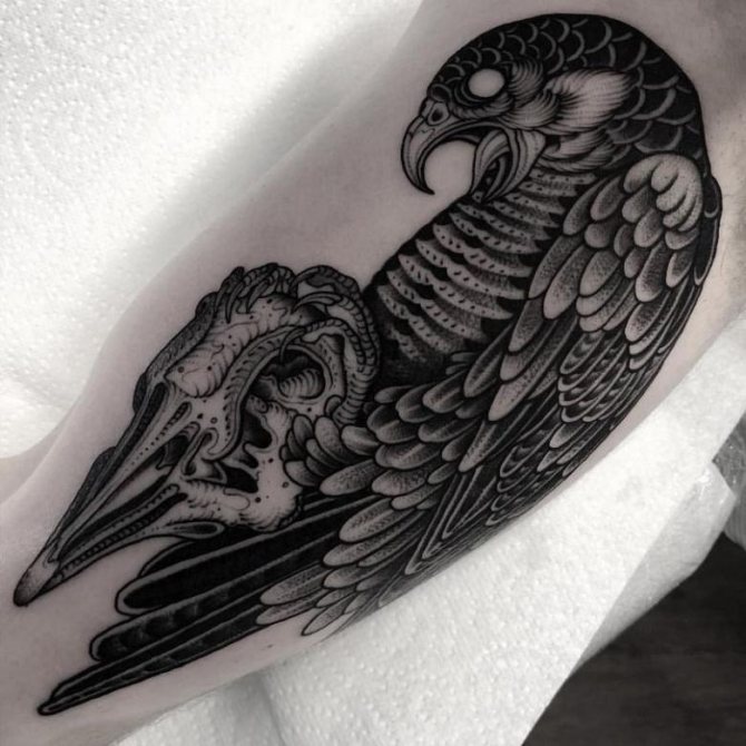 Husk også, at folk, der ikke har i det mindste en del af de egenskaber, der tilskrives dette fjerklædte rovdyr, er det bedre ikke at lave en tatovering. Det har en stærk energi i enhver form og vil give en person et vist psykologisk ubehag.