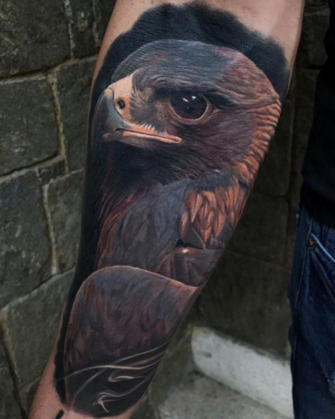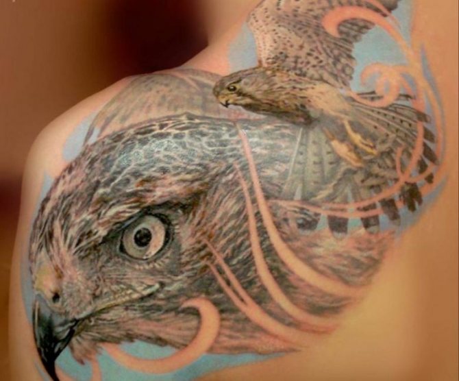 Ellers er det umuligt at formidle den valgte skitses fylde. På brystet eller ryggen kan mænd udskære en svævende falk. Skulderen og underarmen er velegnet til skitser af rovfuglehovedet. En erfaren mestertatovør hjælper en mand eller kvinde med at vælge den rigtige form og placering til hans eller hendes billede.