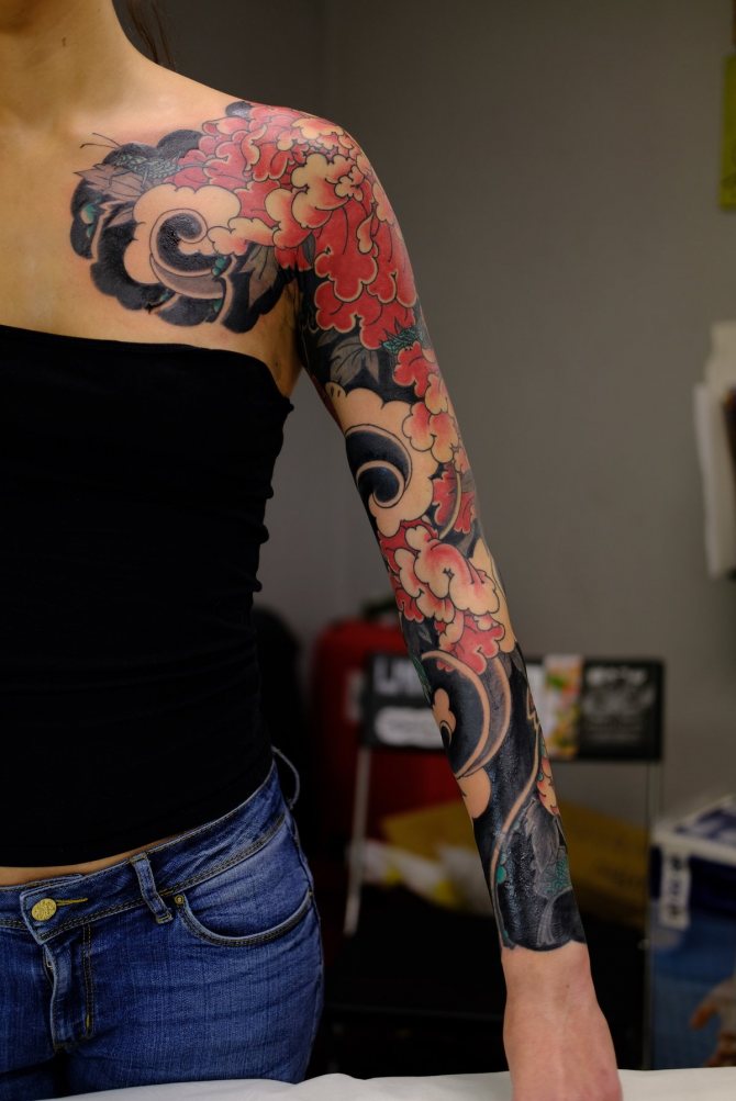 I stedet for at placere motivet på skulderen eller underarmen er det mere sandsynligt, at en kvindes tatovering har et helt ærme med et blomster- eller dyremotiv i stedet for at placere motivet på skulderen eller underarmen.