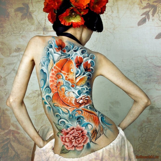 Den japanske tatoveringsstil er oftest forbundet med lyse farver, drager, samuraier og Koi-karper.