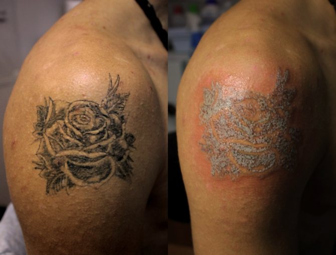 - Mekanisk metode (dermabrasion) - er den mest frygtsomme og farlige, fordi tatoveringen er slebet med en særlig anordning. Det uofficielle navn for denne metode er "blodig", og den efterlader grimme hudar og ardannelse;
