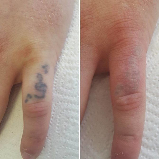 Da tatoveringen "opfører" sig efter den første procedure: den forbliver den samme, er det muligt, at pigmentet kan misfarves en smule. Her afhænger alt af "alderen" af tegningen på huden og dybden af det indgående pigment.