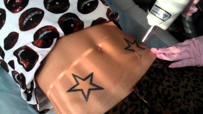 - Afhængigt af tatoveringens alder justerer specialisten laserenheden og retter strålen mod det område, der skal være fri for subkutant pigment. De sunde hudområder påvirkes ikke under proceduren;