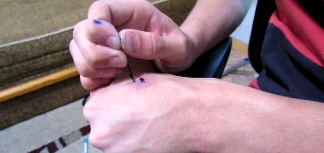 - Hænder og hud skal nødvendigvis behandles med en desinficerende opløsning. Dette bør gøres særligt omhyggeligt, hvis der er planlagt brug af en nål.