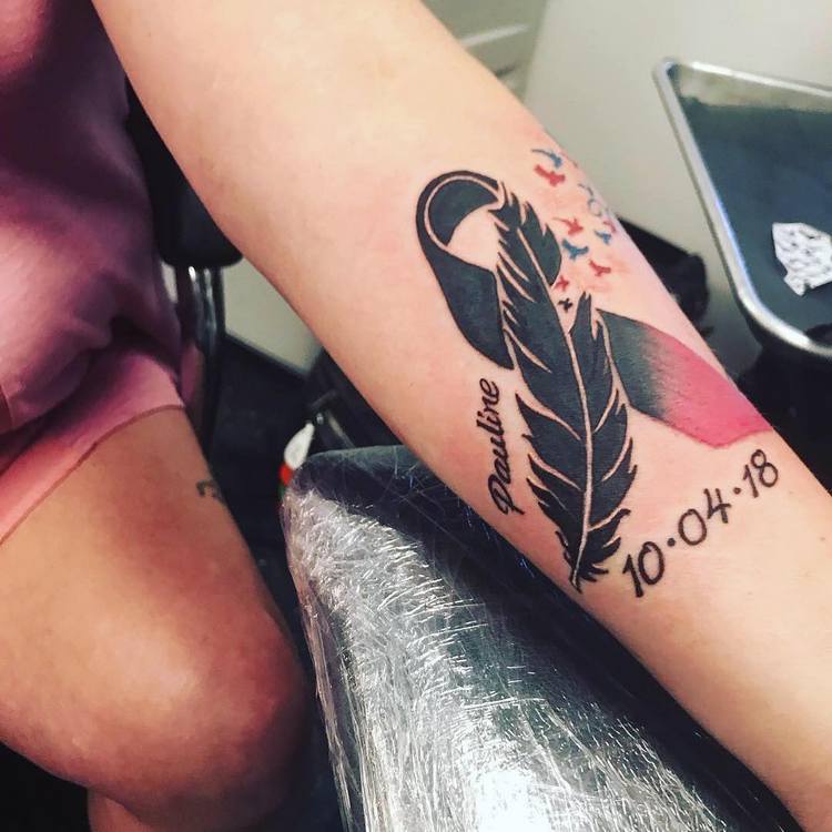 - Nogle mennesker tilføjer navnet på en elsket person, der er død af brystkræft;