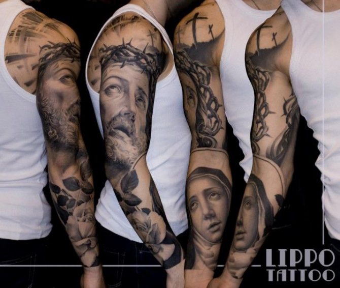 En tatovering af Jesus på armen er en værdig og original udsmykning for mænd. Religiøse mennesker tror, at billedet beskytter dem mod det onde og sikrer dem en højere magts protektion.
