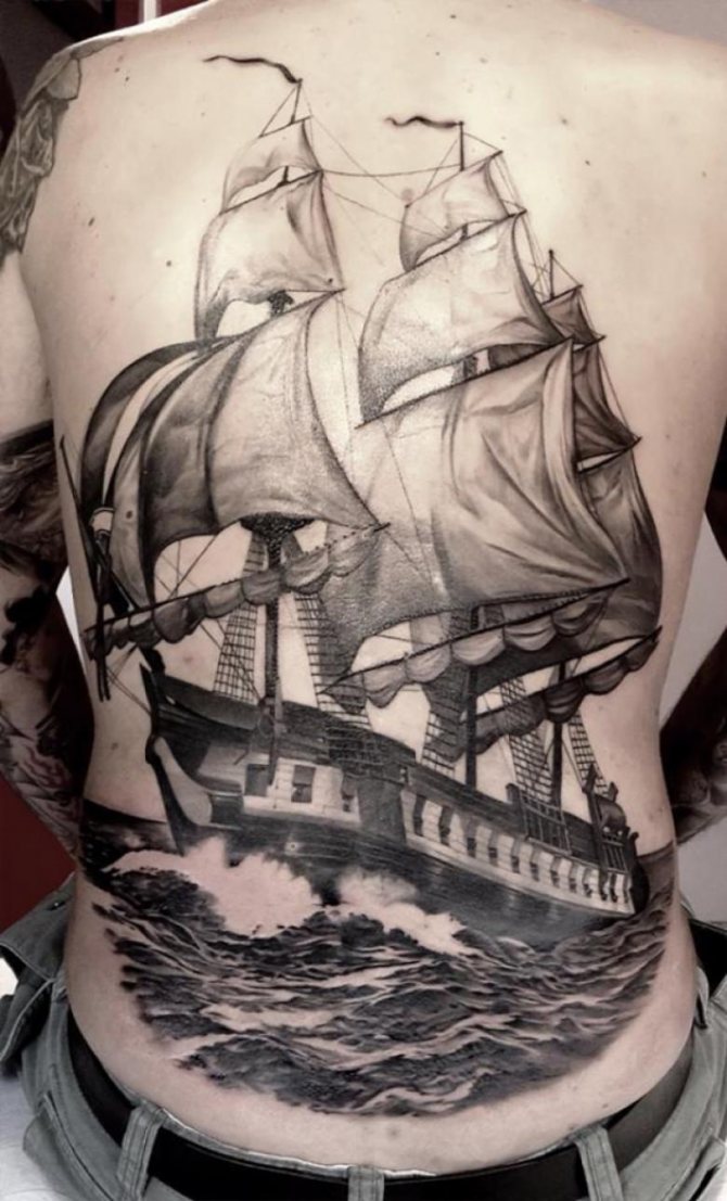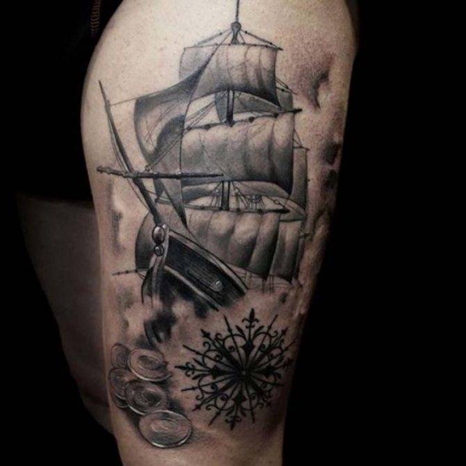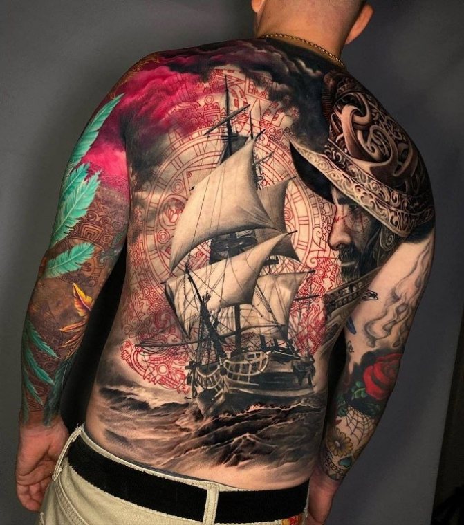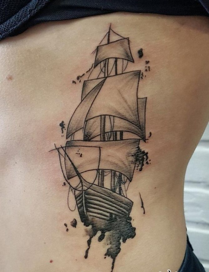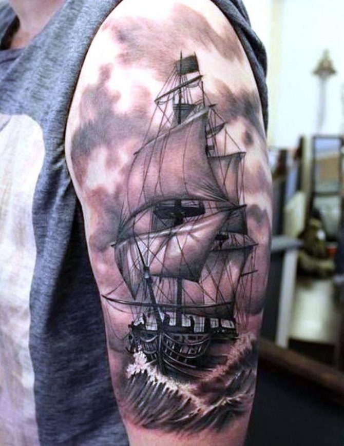 Når du skal vælge en skitse til en tatovering i gammeldags stil, er det bedst at afbilde en sejlbåd. Din håndværker vil hjælpe dig med at vælge det design til skibstatoveringen, der passer perfekt til dit billede. Tegningen af et skib, der sejler på et roligt hav, er valgt i halvt ansigt eller i profil.