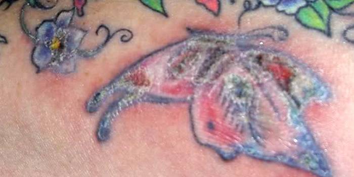 3. Efter at filmene er fjernet, skal huden fugtes med creme. Efter at have fjernet Suprasorb F var min hud skællet i ca. en måned. Denne gang var jeg mere heldig, og tatoveringen faldt af 6 det og næsten umærkeligt.Foto af tatoveringen