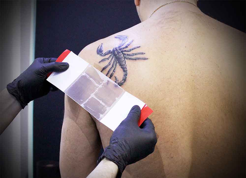 Efter behandlingen forsegler kunstneren tatoveringen med en speciel film (f.eks. Suprasorb). Den er designet til at helbrede og beskytte mod friktion, fugt og støv og skal bæres i 5 dage.