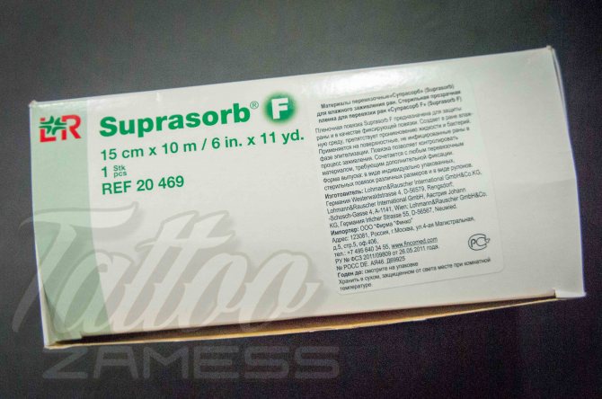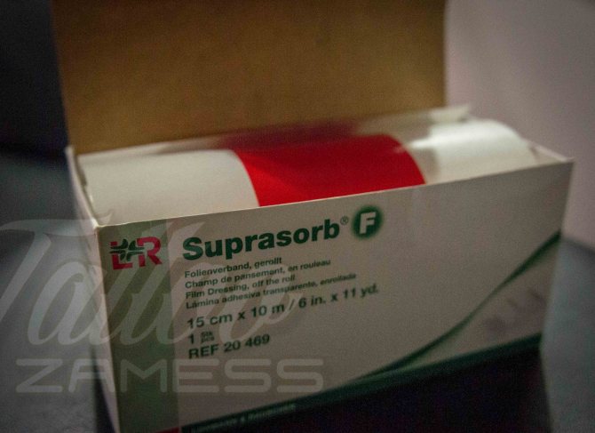 Hej med jer. Jeg har lige fået fingrene i en ny tatovering. Salonen rådede mig til suprosorb film, og jeg gik med til det og fortrød det ikke en tøddel. Min tidligere tatovering blev lavet derhjemme, og ingen fortalte mig, hvordan jeg skulle passe på den, og udseendet af denne tatovering lader meget tilbage at ønske. Så efter jeg fik tatoveringen på min hud, lagde de en film på den. At gå med det bør være inden for 5 dage. I 5 dage fjernede jeg det sikkert, tatoveringen ser meget lys ud, klør ikke og der er ingen skorpe.