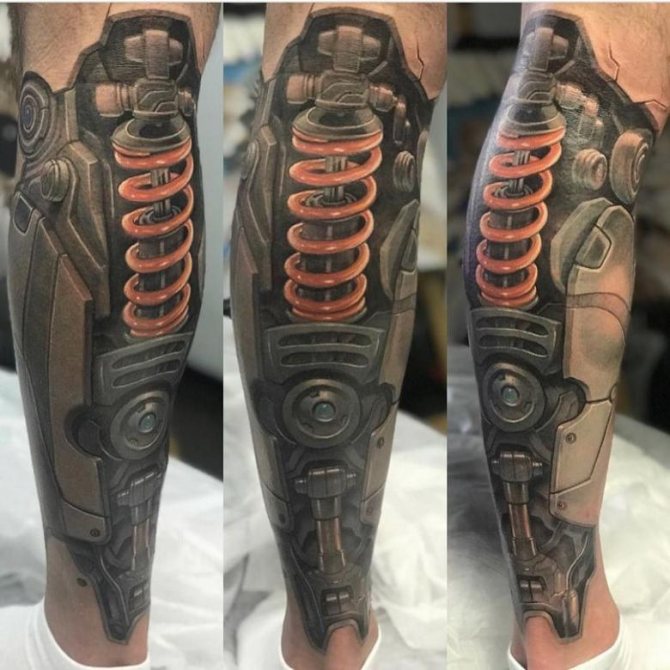 Der findes en hel liste af undertyper i denne retning: cyberpunk, hi-tech, Steam punk. Alle tegninger kræver en høj grad af professionalisme fra kunstnerens side for at gøre hver eneste detalje ekstremt realistisk. "Farverne, højdepunkterne og skyggerne er med til at give liv til tatoveringen.