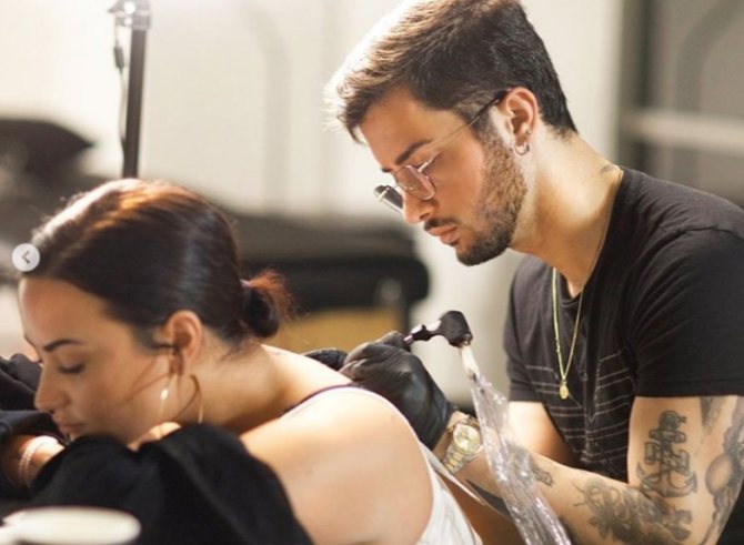 Under lillefingeren, på håndryggen, kan du se et lille billede af et kors. I dette tilfælde er det blot en hyldest til den religion, som Lovato er tilhænger af. Berømtheden selv har gentagne gange sagt, at hun er troende.