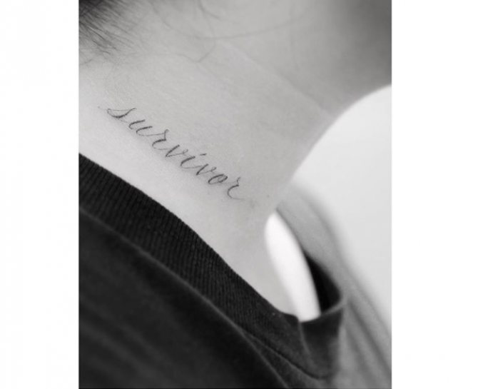Der findes også adskillige tatoveringer på kendissens fingre, alle i form af inskriptioner. På siden af langfingeren kan du se et ord, der betyder "fred" i oversættelse. Skuespillerinden betegner sig selv som pacifist.