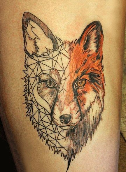 Klar ausgeführte Linien, mit ein wenig Zusatz machen das Fuchs-Tattoo wirklich attraktiv, trotz seiner dunklen Farbe. Ähnliche Fuchsmuster können auch in leuchtenden Farben angebracht werden: