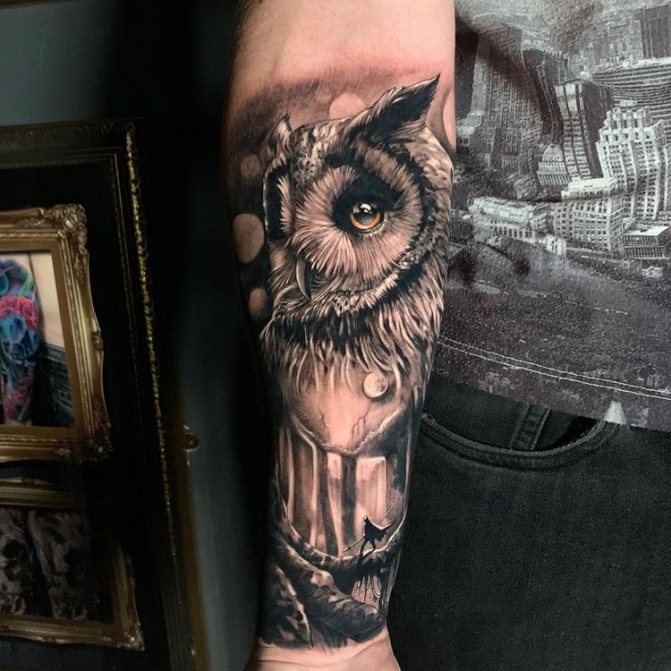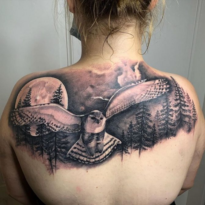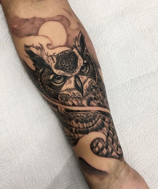 Das Design einer Eule basiert oft auf der Form des Vogelkörpers und der Position des Vogelkörpers. So wird beispielsweise eine Eule auf dem Rücken und der Brust oft mit ausgebreiteten Flügeln bis zu beiden Schultern gezeichnet und eine Eule seitlich auf dem Arm vom Schultergelenk bis zum Ellbogen.