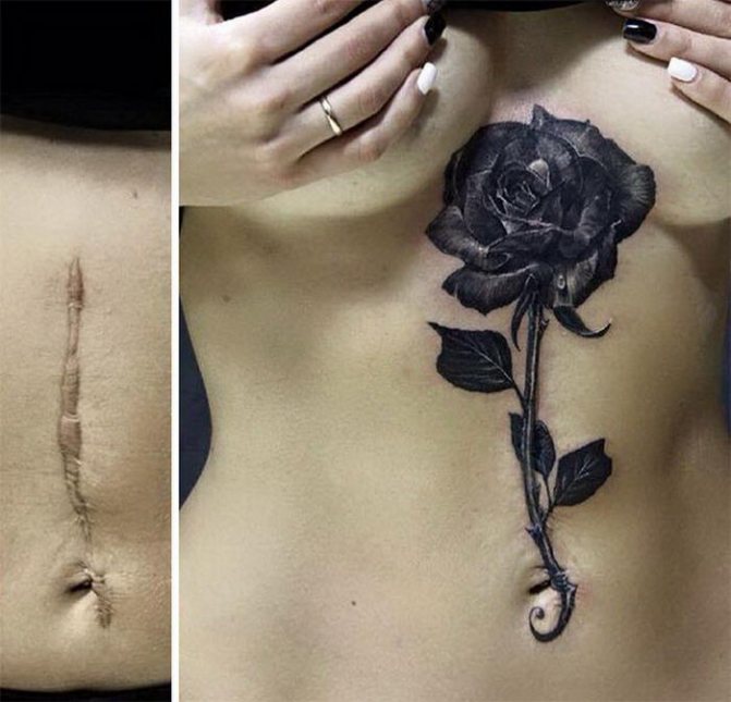In Echtzeit gibt es viele Methoden, um Narben und Narben loszuwerden, aber leider nicht immer wirksam. Tattoo in dieser Option wird nicht nur helfen, den Mangel an Haut zu verstecken, sondern auch, um ihre Besonderheit zu markieren. Sie können auf die klassische Tätowierung zurückgreifen, als auch, wenn nötig, um die Mängel im Gesicht zu verstecken, hier ist eine geeignete permanente Tätowierung. Aber nicht alle Narben können tätowiert werden. Je nach Art der Narbe und ihrer Lage wählt der Meister eine geeignete Skizze für Form, Inhalt und Farbpalette.