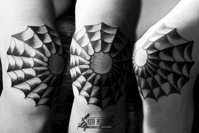Seit der Antike wurde ein Spinnennetz mit dem Universum und dem menschlichen Schicksal in Verbindung gebracht. Bei den amerikanischen Ureinwohnern galt ein Spinnennetz als Talisman gegen das Böse und Krankheiten, weshalb es über die Wiege eines Säuglings gehängt wurde. Für Männer steht dieses Symbol für die Treue zu ihren Lebensprinzipien und Überzeugungen und für die Fähigkeit, bis zum Ende für sie zu kämpfen. Aber ein Netz ohne seinen Schöpfer, die Spinne, gibt es nicht. In der Tätowierung mit einer Spinne stecken viele Bedeutungen. Sie können die eine, die Ihre innere Welt passt zu wählen: Macht, Harmonie, Wissen und Gleichgewicht, aber vielleicht die Spinne wird ein Symbol für Glück, Reichtum und Wohlstand sein, ist es möglich, dass dieses Symbol zeigt das Geheimnis und Geheimhaltung, aber zur gleichen Zeit, und an einem kreativen Geist und Kreativität seines Besitzers.