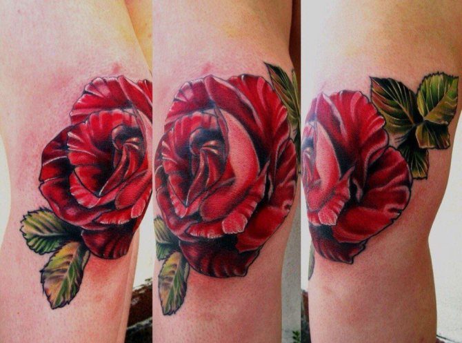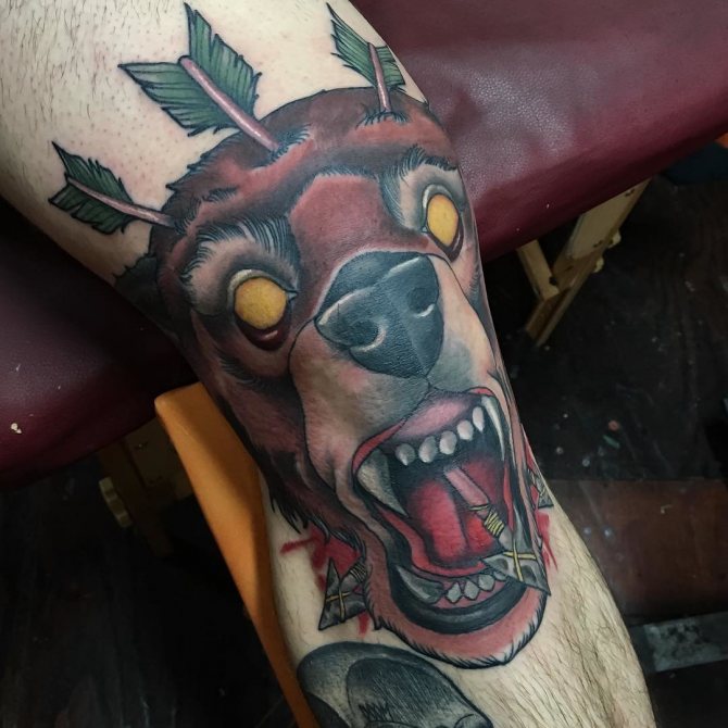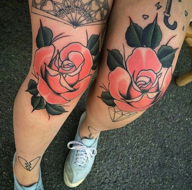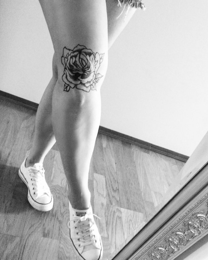 Die Symbolik von Tätowierungen auf dem Knie hängt direkt vom Bild selbst ab und hat die gleiche Bedeutung wie Zeichnungen auf anderen Körperteilen. Die Schnauze eines Löwen, Tigers oder Bären mit einem Grinsen bedeutet beispielsweise Stärke, Kraft und Zähigkeit des Charakters seines Besitzers. Eine blühende Rose steht für Glanz und feurige Gefühle. Das Motiv mit den Vögeln steht für Freiheit.