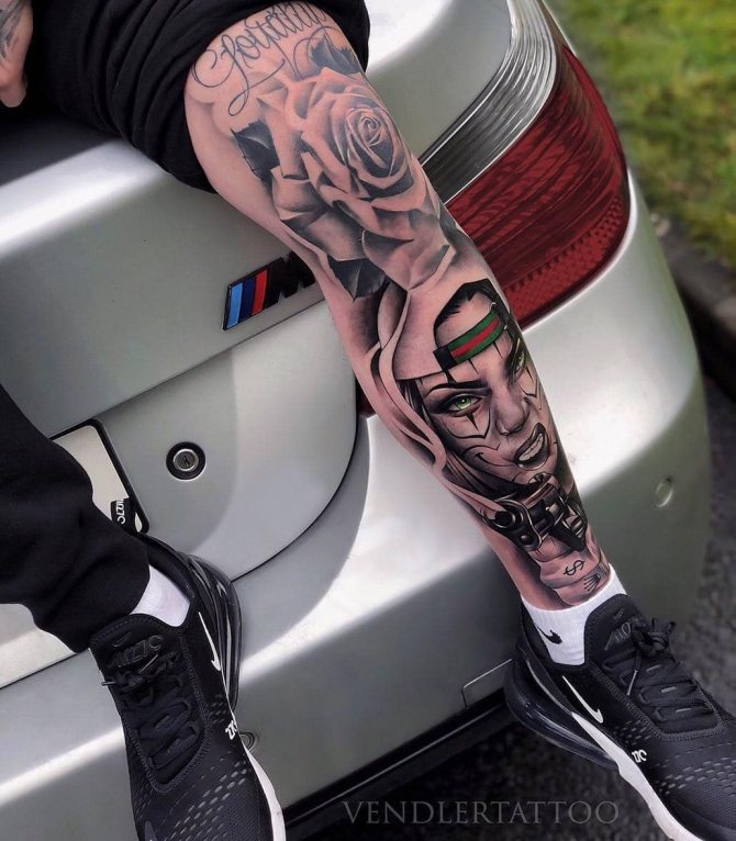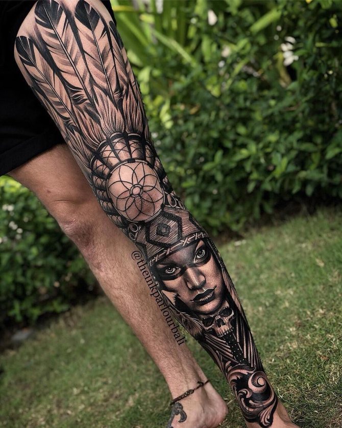 Skizzen des Auges wirken wie ein Talisman. Diese Tätowierung vertreibt böse Gedanken, negative Energie und schützt den Träger vor unüberlegten Handlungen. Skizzen von Schilden und Ritterrüstungen sprechen für sich. Tattoo-Inschriften stellen Sprüche großer Geister dar und können aus zwei Teilen bestehen, die an beiden Füßen angebracht werden. Beliebte Motive sind Blumen und florale Elemente, Sonne, Windrose, Mandala-Variationen, verschiedene Muster, schwarz-weiße Ornamente, Amulette, Tiermotive und viele andere Beispiele.