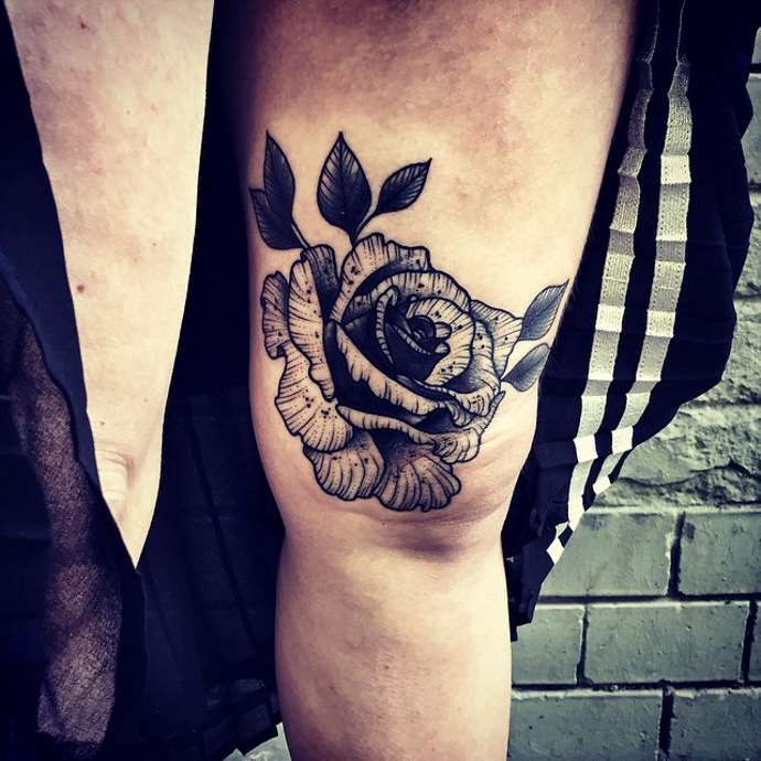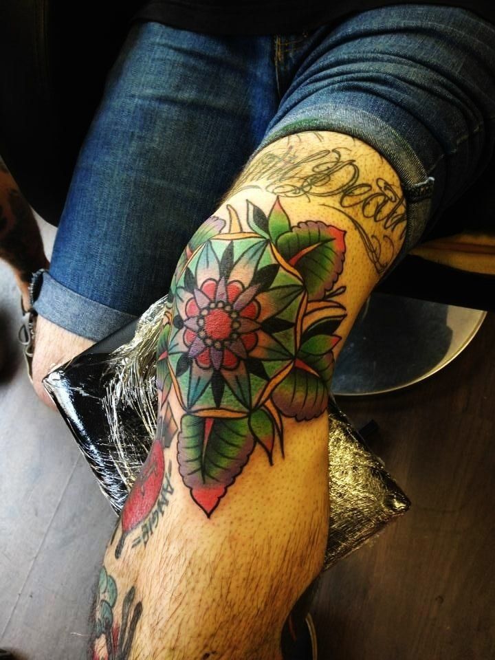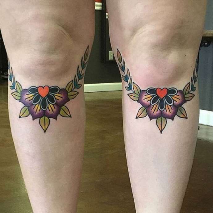 Die Haut am Knie bleibt von altersbedingten Veränderungen im Laufe des Lebens nahezu unberührt, so dass die klaren und ausgeprägten Linien des Designs nahezu in ihrer ursprünglichen Form erhalten bleiben. Ein großes Tattoo kann auch auf dem Knie platziert werden, das nahtlos in den Ober- oder Unterschenkel übergeht. Zu den Nachteilen dieses Bereichs gehört, dass das Aufbringen des Bildes schmerzhaft ist.