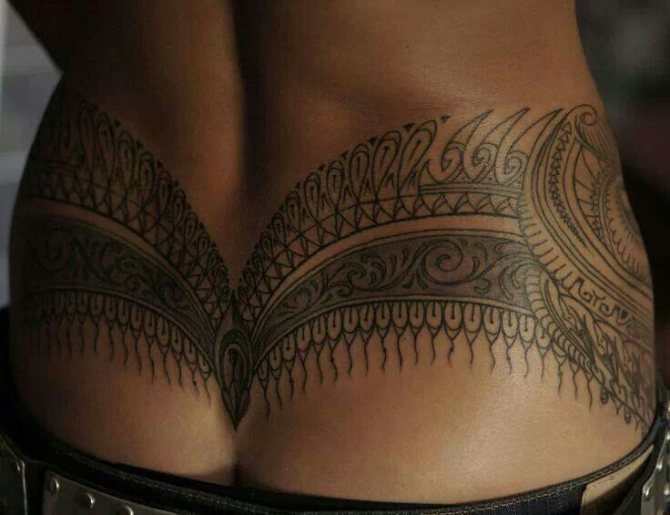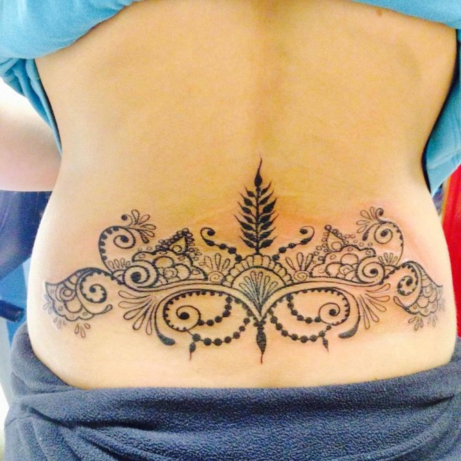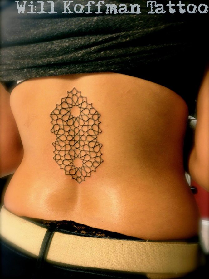Ordentliche und zarte Muster gehören zu den beliebtesten und stilvollsten Tattoo-Designs, die auf dem unteren Rücken ausgeführt werden. Muster sind nicht nur subtile und zarte Bilder, sie haben eine bestimmte Bedeutung, die viel über ihre Trägerin aussagt. Gleichzeitig können die Mädchen ihre eigene individuelle Symbolik in ihr Tattoo einbringen. Das weibliche Geschlecht zeichnet sich durch keltische Muster, griechische Ornamente oder arabische Symbole aus.