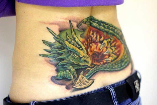 Der Drache als Tätowierung bei Mädchen ist extrem selten, aber er hat eine unglaublich tiefe und reiche Bedeutung. Dieses Tattoo kann in jeder Größe ausgeführt werden, die Bedeutung ändert sich nicht. Manchmal führen farbige Tattoos in Kombination mit anderen Elementen. Die Hauptbedeutung der Tätowierung wird als Macht, Weisheit, Adel, Stärke, Ausdauer, Loyalität, Erfolg und Wohlstand angesehen.
