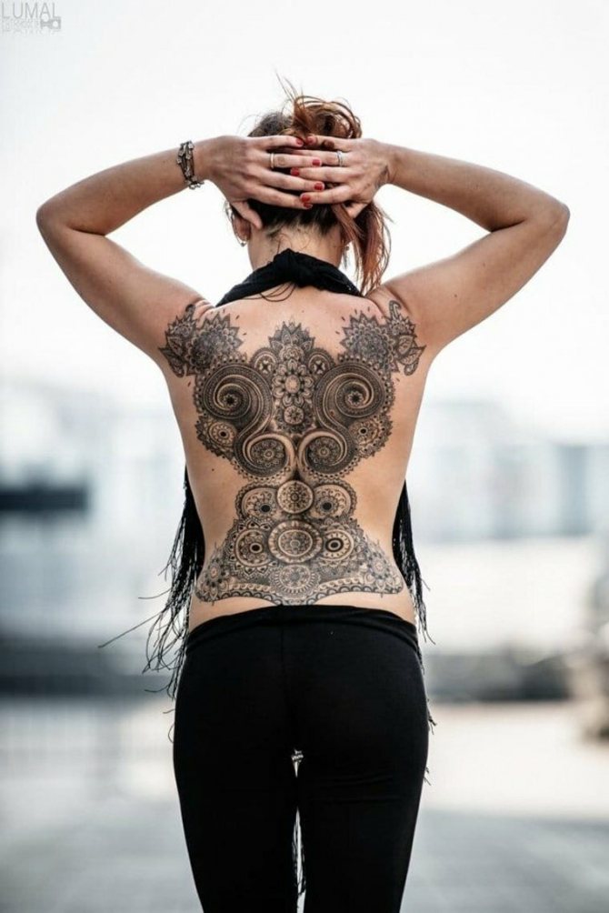 - Der untere Rückenbereich bietet viel Platz für ein durchgehendes Design. Auch eine zierliche Frau kann sich ein großes Tattoo auf die Taille stechen lassen.