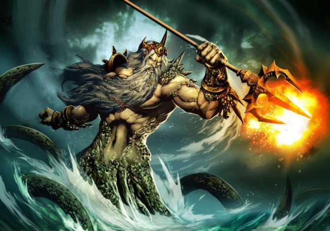 Oft schlägt er mit seinem riesigen Dreizack auf den Grund des Ozeans und verursacht schreckliche Stürme. Die griechischen Seeleute baten jedoch Poseidon um Schutz, da er ihr Beschützer und Wächter war.