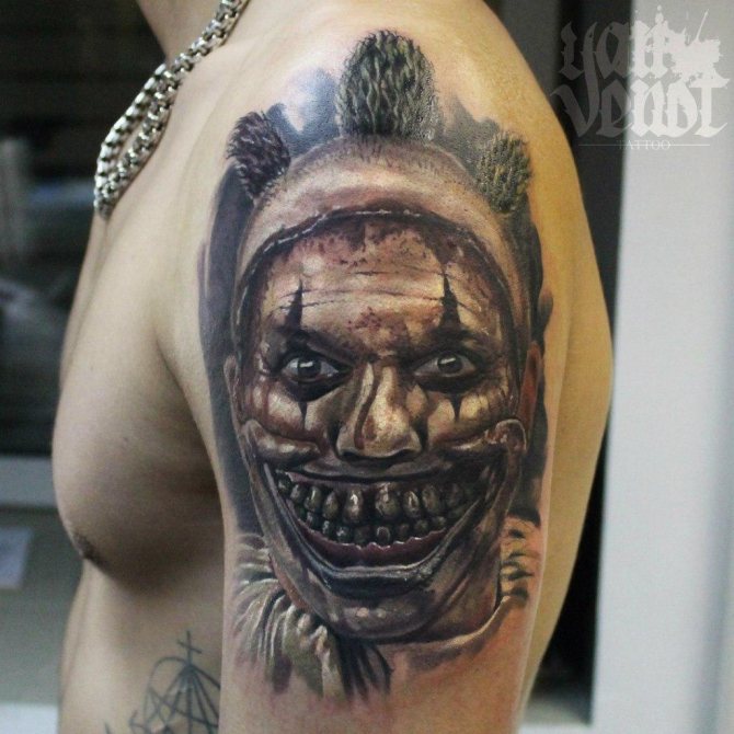 Natürlich, wenn Sie den Wunsch haben, auf dem Körper eine kleine Tätowierung eines Clowns zu reproduzieren, werden Sie auf jeden Fall zeigen, Ihre Einzigartigkeit und Ungewöhnlichkeit, wie eine solche Tätowierung (St. Petersburg) hat noch nicht unter den Kunden des Tattoo-Studio "Maruha.