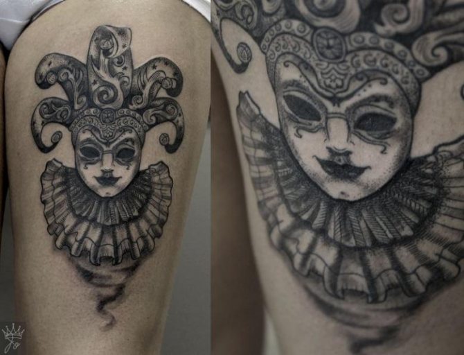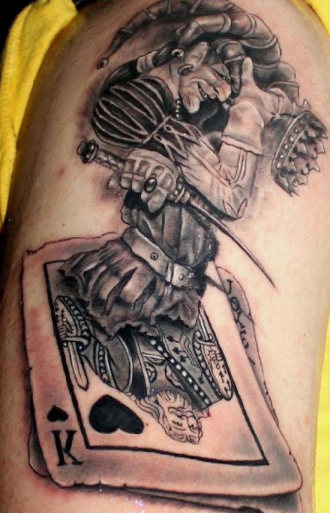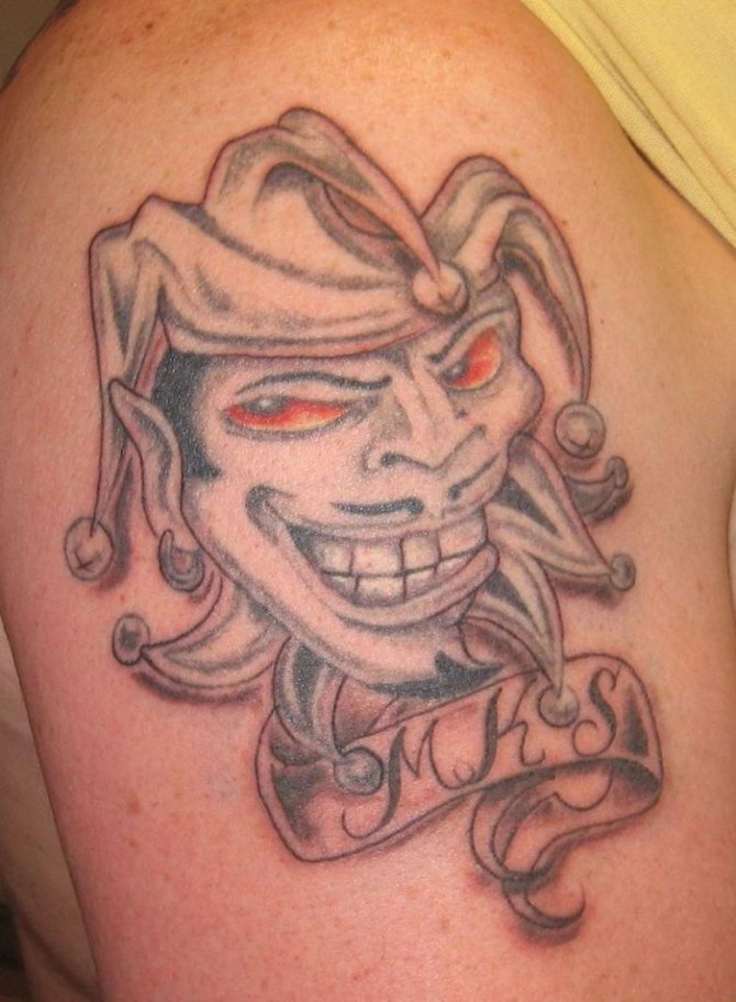 Das Bild des Narren, das von einem guten Meister dargestellt wird, kann eine wirklich interessante und unkonventionelle Verkörperung finden. Das Wichtigste ist, dass man bei Tätowierungen nicht spart, wenn man nicht den Rest seines Lebens über ein misslungenes "Kunstwerk" traurig sein will.