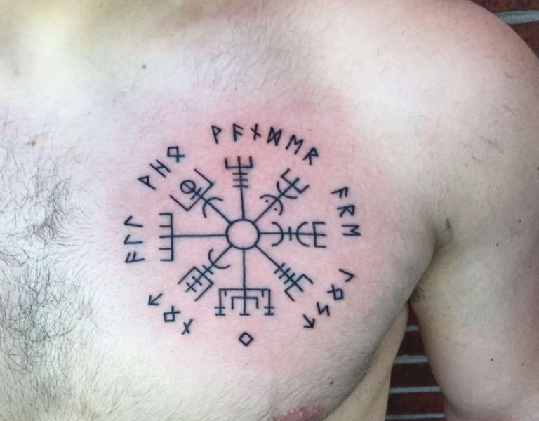 Runenkompass - Ein uraltes Symbol, das einem hilft, auf dem richtigen Weg zu bleiben. Heute hilft dieses Tattoo auch dabei, die richtigen Entscheidungen zu treffen und sich in die richtige Richtung zu bewegen.