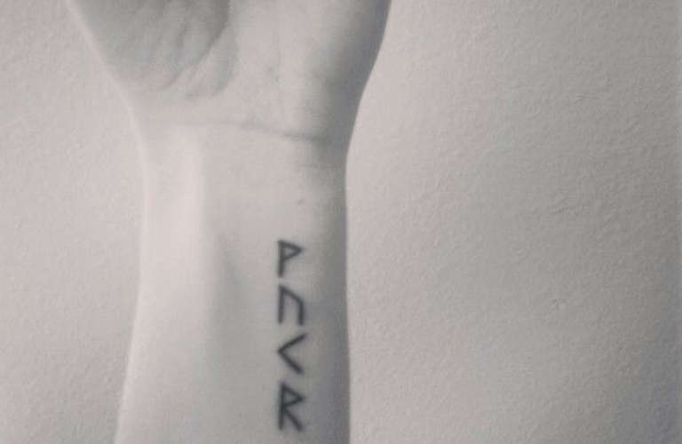 Am Handgelenk ist nicht viel Platz für Tätowierungen, daher wählen Männer verschiedene Runen, Symbole der skandinavischen Schrift mit tiefer Bedeutung und Implikation. Hier können Sie jedes beliebige Muster in diesen Stil setzen.