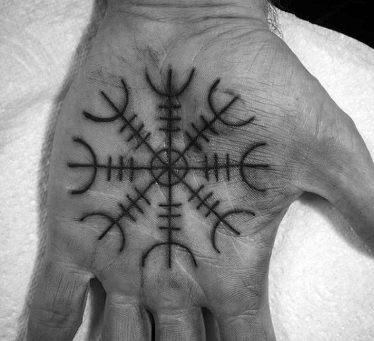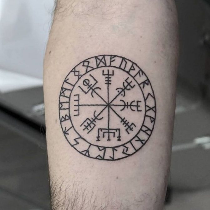 Wichtig! Denken Sie daran, eine Tätowierung darf keine Dissonanzen und Widersprüche zwischen ihrer Bedeutung und Ihrem Charakter schaffen. Skandinavische Motive sind nur in Gegenwart von Stärke, Tapferkeit, Männlichkeit und Brutalität angebracht.