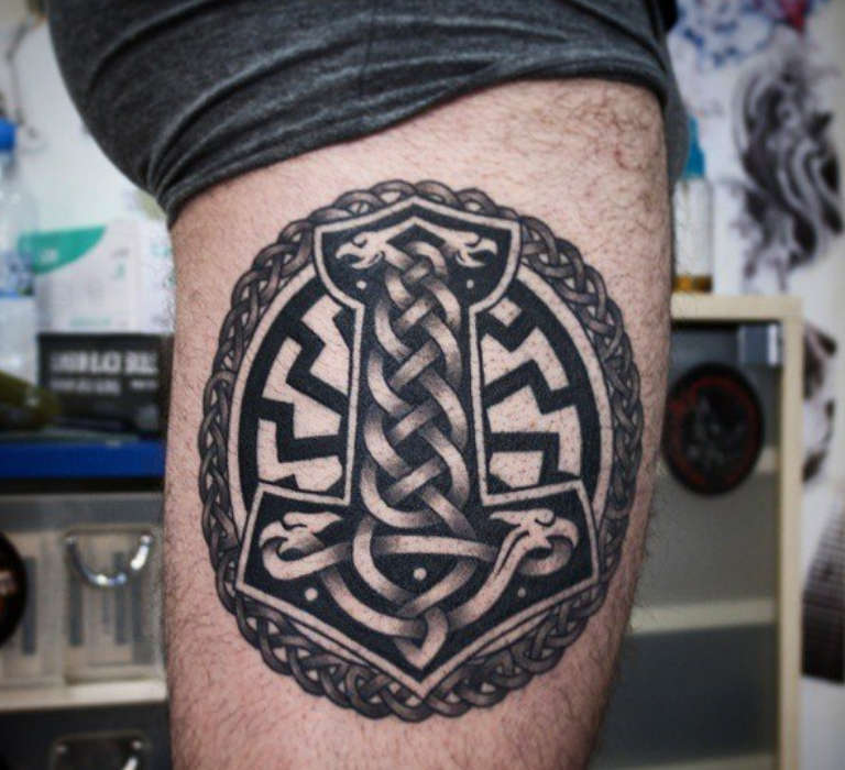 Skandinavische Tattoos werden selten auf die Oberschenkel geschlagen, es ist eher die Wahl der weiblichen Hälfte der Gesellschaft. Meistens handelt es sich dabei um Muster oder ein ganzes Ornament, das aus verschiedenen sich wiederholenden Mustern besteht.