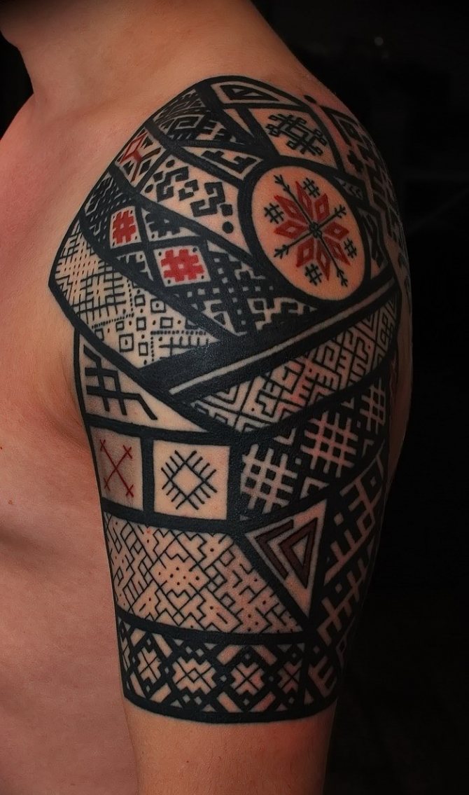Gleichzeitig sollten wir beachten, dass über die Tätowierungen der slawischen Völker nicht viel bekannt ist. Daher können die Wissenschaftler nur spekulieren, wie die Dinge damals waren. Aus verschiedenen Quellen und Erzählungen können wir schließen, dass der Körper mit Mustern, Zeichen und Runen bedeckt war. Damals glaubten die Menschen vor allem an Götter, Zauberer und Meerjungfrauen. Darüber hinaus wurden einige Symbole zum Gedenken an ihre Vorfahren angefertigt. Man glaubte, dass mehrere Runen auf dem Körper eines Menschen ihm besondere Kraft und Ausdauer verliehen.