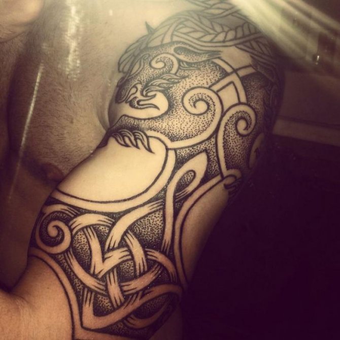 Wie das alte Keltisch ist auch der skandinavische Stil gut erkennbar und hat seine eigenen, lebendigen und originellen Akzente. Die enge Beziehung zwischen Mythologie und Kultur, Religion und Heidentum macht es zu einer interessanten und faszinierenden Sache zu entdecken, vor allem bei der Auswahl einer Tätowierung für sich selbst und um Ihren Körper zu schmücken. Ein professioneller und guter Handwerker wird Ihnen helfen, ein originelles Design mit einer Bedeutung auszuwählen, mit der Sie sich selbst ausdrücken können.