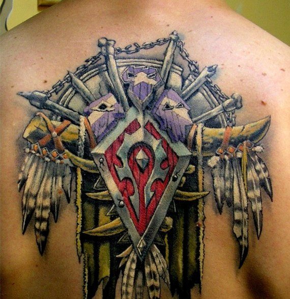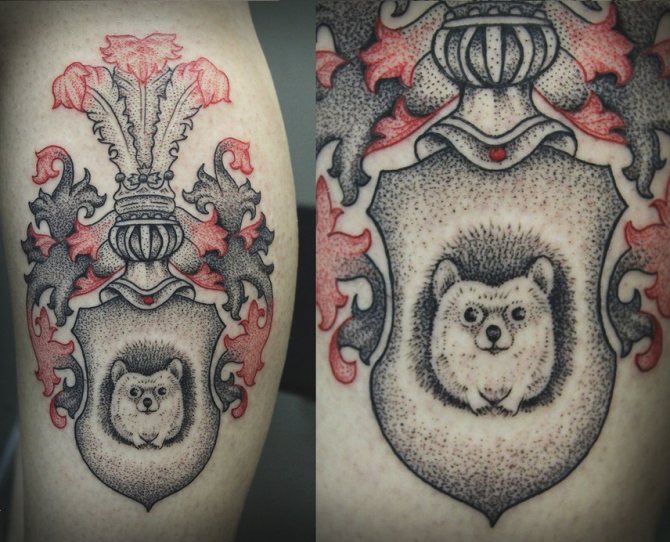 Wie bei Rüstungen und Waffen, die am besten geeignete Stil für diese Tätowierung - Realismus. Es wird alle Details des Schildes so realitätsnah wie möglich abbilden. Der Realismus gilt als die schwierigste Ausführung, daher sollte man bei der Auswahl eines Meisters vorsichtig sein. Vergewissern Sie sich, dass er realistisch arbeitet (das kann man in der Regel an den Porträts erkennen). Eine solche Tätowierung kostet zwar ein hübsches Sümmchen, aber man sollte nicht knausern, wenn man nicht jeden Tag in den Spiegel schauen und etwas sehen will, das nicht ganz den eigenen Vorstellungen entspricht. Ein zu niedriger Preis für einen umfangreichen, realistischen Auftrag sollte Sie bereits misstrauisch machen und seine Qualität in Frage stellen.