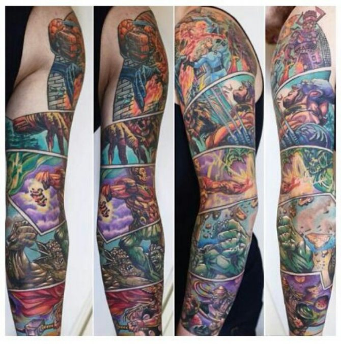 Sehr oft wünschen wir uns Tattoos, die unsere Lieblingsfiguren aus Filmen, Fernsehserien, Büchern, Cartoons usw. darstellen. Auch die Marvel-Comics und in der Folge die Filme mit ihren Superhelden sind keine Ausnahme. "X-Men", "Captain America", "Spider-Man", "Fantastic Four", "Thor", "Iron Man", usw. Das Marvel-Universum hat Generationen fasziniert. Wer von uns hat sich nicht schon einmal in die Rolle eines Lieblingshelden versetzt und von Superkräften geträumt? Wer wollte nicht schon einmal fliegen, durch Wände gehen, Feuer werfen oder unsichtbar werden? Als Kinder und Jugendliche sahen wir uns die Schlachten der großen Helden an und spielten dann im Hof unsere Lieblingsfiguren nach. Auch als Erwachsene haben viele ihre Vorliebe für Marvel-Helden nicht verloren. Die Teenager von gestern und die erwachsenen Jungs und Mädels von heute warten wie Kinder auf die neuen Filme, die herauskommen. Deshalb sind Marvel-Tattoos auch so beliebt.