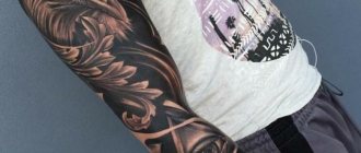Der zarte Unterarm einer Frau oder ein schlanker Oberschenkel sind mit organischen Tattoos nicht weniger auffällig. Die Asymmetrie der Handlung, die von der Hälfte des Rückens ausgeht, zieht den Blick auf sich, die Figur fließt den Oberschenkel hinunter und umschließt die Wade. Es stimmt, dass sich eher Mädchen für einen tätowierten Ärmel entscheiden.
