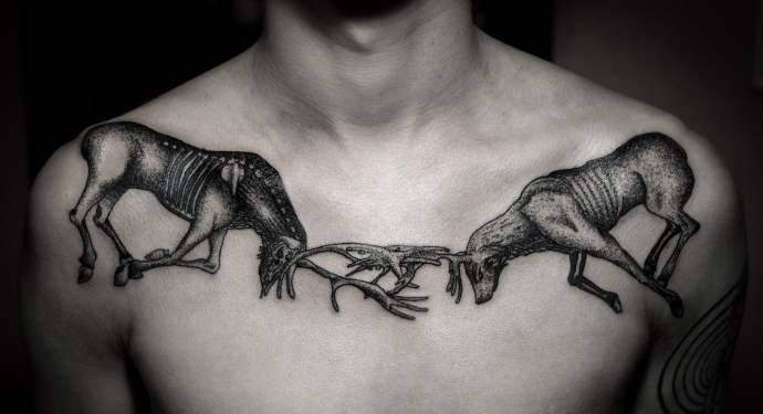 Seit jeher beeindrucken Hirsche die Menschen durch ihre Stärke und Schönheit. Das Bild des Hirsches findet sich häufig in der Kultur und den Mythen verschiedener Völker wieder. Die Hirsch-Tätowierung wird traditionell als männliche Tätowierung betrachtet, aber auch Mädchen wählen sie häufig. Der einzige Unterschied besteht darin, dass die schönere Hälfte der Menschheit Rentiere bevorzugt, was die Bedeutung der Tätowierung beibehält, aber sanfter und niedlicher aussieht.