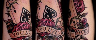 Die Komplexität dieser Sprache führt zu der Tatsache, dass Menschen mit großer Erfahrung in der Anwendung und Lesen solcher Bilder, gewinnen "über den Zaun" große Autorität, werden sie "Ringträger" genannt, die Nadel - "pesh", "Sporn" oder "Stich", Tinte wird als "Heizöl" oder "Schmutz". Schließlich sind "Heizöl" die wertvollsten Produkte der Zone: Tee, Fett und Marmelade; so wird Tätowiertinte mit den höchsten materiellen Werten der Zone gleichgesetzt, während die Tätowierung selbst "regalka", "Quittung" oder "portachka" genannt wird. Die Tätowierungen und der Körper sind ein integriertes Ganzes, das in ständigem Dialog mit der Außenwelt steht. Die Gefängnistätowierungen verlangen vom Träger, dass er sich an verbale, gestische und Verhaltensregeln hält! "Autogramm" Die Tätowierungen tragen in der Regel den Namen des Trägers oder ein Symbol, das ihn ersetzt, und sind so verbreitet, dass sie auch außerhalb der Welt des Diebes zu sehen sind, oft an den Handgelenken anderer. Zu den persönlichen Amuletten gehören persönliche Darstellungen von Schutzengeln, Jesus Christus, der Jungfrau Maria, Heiligen, Kirchen und Totenköpfen. Wie Sie sehen, haben sie alle mit dem religiösen Thema Tod zu tun und tragen auch eine versteckte heilige Bedeutung. In der Welt der Diebe gibt es den Tod im gewöhnlichen Sinne des Wortes nicht, und um als Dieb geboren zu werden, muss man zweimal "sterben": aus der "Welt der kleinen Kinder" und aus der "Welt des Willens". "Vetternwirtschaftliche Teufel". Die Welt der Diebe erkennt keine andere Autorität als die der Diebe an, so dass jede Darstellung des "Unkonventionellen" als Manifestation der äußeren Welt betrachtet wird, die den Dieben feindlich gesonnen ist; sie lehnen das "System" zugunsten der Welt der Diebe ab. So bedeutet das Bild und das Wort "Teufel" in der Umgangssprache eine Person, die nicht zu den Dieben gehört, und bezieht sich eher auf "Bullen" oder "Teufelskompanie" - Mitarbeiter von IAB und MIA, während "cherty kumovsky" Sträflinge bezeichnet, die Mitgefangene an kum (Zusammenarbeit mit den Lagerbehörden) verpfeifen. "Die Farbe der Kreuze Der Begriff "Anzug" ist im Diebesjargon eindeutig und äußerst wichtig, denn er bezeichnet gleichzeitig alle "malina" und alle Diebe derselben Spezialisierung, das Schicksal der Diebe, das Glück oder das Geschick. "To hold a suit" bedeutet in der Umgangssprache "Macht haben, führen, die Ordnung aufrechterhalten und "den Überblick behalten". Die wichtigsten Symbole für einen Dieb im Gesetz sind das Zeichen der Kartenfarbe Kreuz oder Pik, die meisten "Trümpfe" im Kartenspiel eines Diebes, dazu gehören auch Bilder von Totenköpfen, Flügeln, das Zeichen des Kreuzes, die Krone des Diebeskönigs, Schlangen und Adler; ein weiteres Symbol für einen Dieb ist eine Katze, die Beweglichkeit und Glück symbolisiert, was als - Native Prisoner - entschlüsselt wird. Eine "Mutter der Diebe" ist nicht nur eine bestimmte Position im Gefängnis, sondern auch die Ahnfrau des Diebesstammes, die Trägerin der Gesetze der Diebe, also ein "ritueller Charakter" - in der Umgangssprache: "makhanka", "pakhanka", so wie eine "Diebesfamilie" in der Umgangssprache eine Gruppe von Dieben ist, was keine Verwandtschaft impliziert. Nicht umsonst lautet einer der Eide der Diebe: "Ich schwöre bei meiner Mutter!". "Schwarzer Anzug." Der Begriff "Erpressung" wird auf eine Tätowierung angewandt, die einen höheren Rang hat als die eines gewöhnlichen Diebes. Die Tätowierungen der "Niedergeschlagenen" rufen in der Zone nichts als Entsetzen hervor, und jeder meidet sie wie die Pest, selbst der zufällige Kontakt mit einer solchen Person ist "verachtenswert" und kann jeden auf das Niveau eines Blindgängers "herabsetzen".