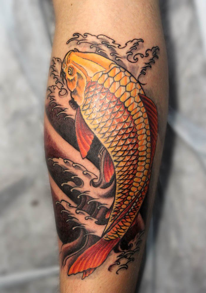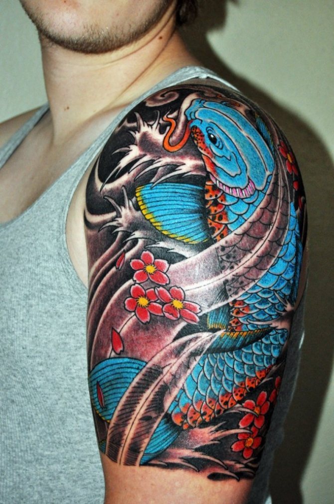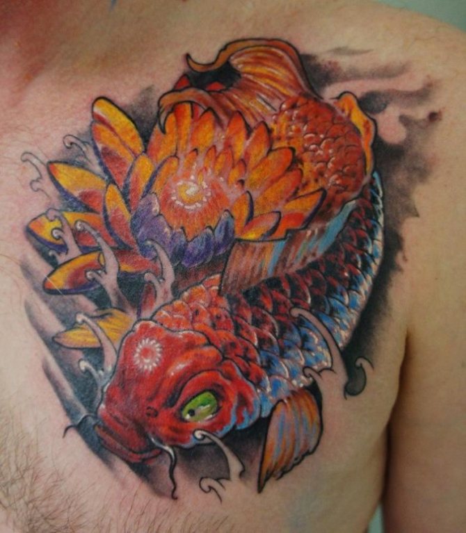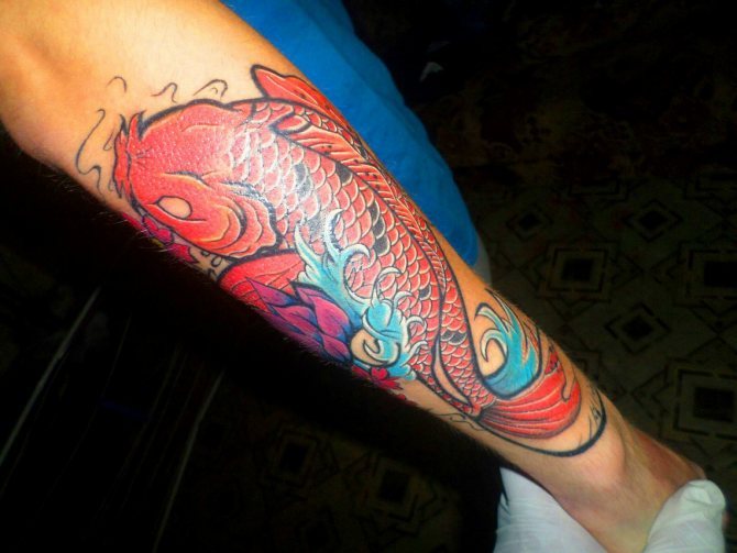 Der japanische Karpfen steht an erster Stelle der Beliebtheit unter den orientalischen Motiven in Tätowierungen. Der Fisch hat mehr Bewunderer als der Samurai oder Sakurai. Die Häufigkeit von Tätowierungsaufträgen übertrifft die des orientalischen Drachens.