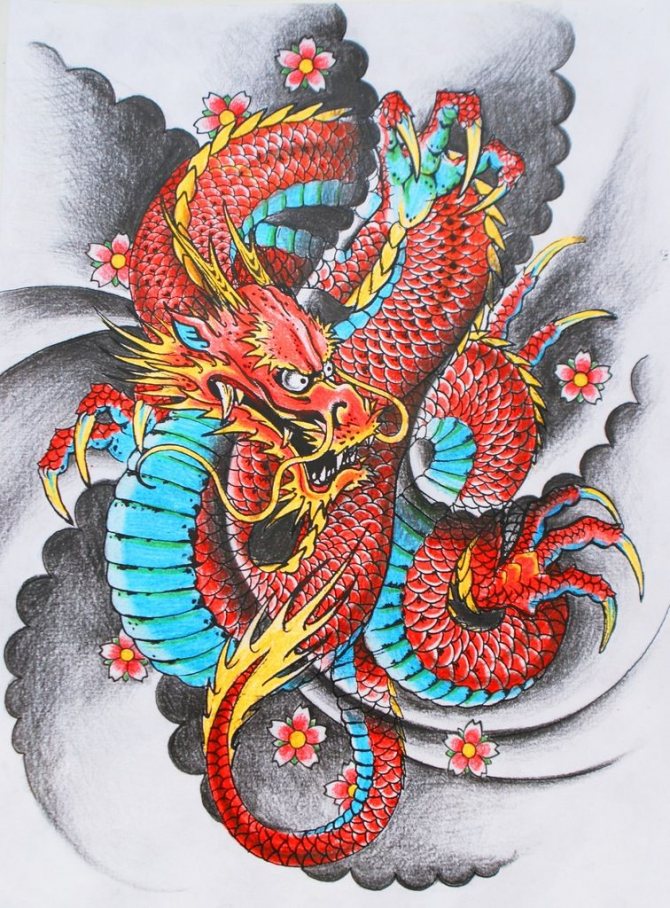 Ein Karpfen, die Tätowierung ist ursprünglich männlich. Im Land der aufgehenden Sonne gilt die Zeichnung eines Karpfens auf dem Körper einer Frau als inakzeptabel, kann aber bei besonderen Verdiensten tätowiert werden. Denn der goldene Koi wurde ursprünglich mit den Energien der männlichen Fruchtbarkeit und Stärke in Verbindung gebracht. Die Energie des Zeichens ist nicht für weiche und verletzliche Mädchen geeignet, weil sie ein ernsthaftes Ungleichgewicht in den emotionalen Zustand bringen kann.