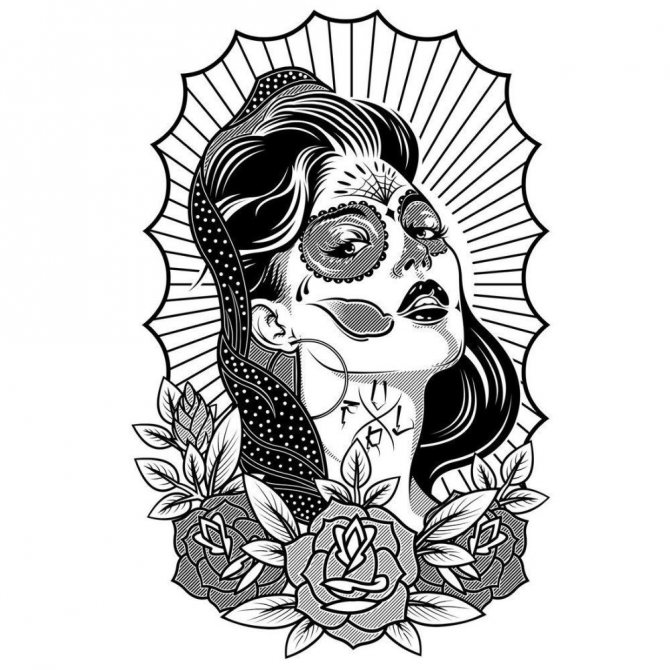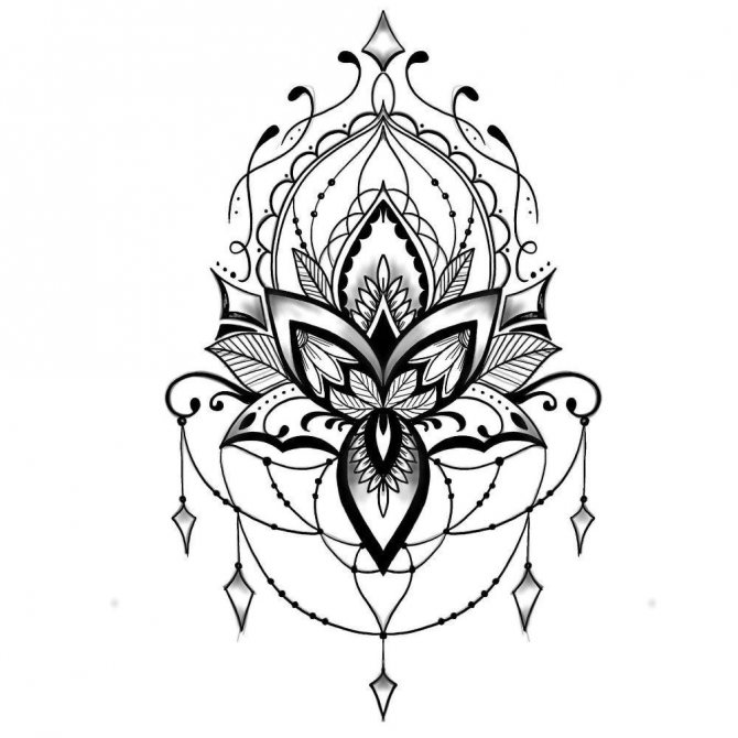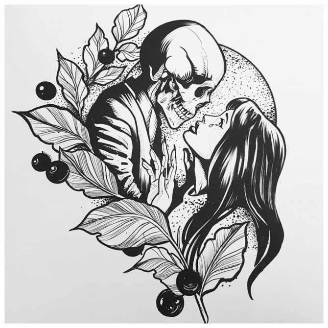 Und in den meisten Fällen wird eine solche Tätowierung in einer einzigen Linie ausgeführt und in schwarzer Farbe gemalt.